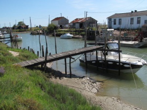 In Le Pellerin angekommen, rechts weiter am Ufer. Kurzes Stück Feldweg nach La Martinière. Dann kommt ein langes, sehr schönes Stück an einem alten Kanal, immer geradeaus. So langsam kann man das Meer riechen. Nach 14 km endet der Kanal, hier links versetzt (2010 fehlte dort ein Wegweiser).