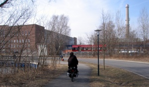 Auf Radwegen am Nordufer weiter in Richtung Westhafen. Die Fennstraße und die Föhrer Straße müssen an Ampelkreuzungen überquert werden.