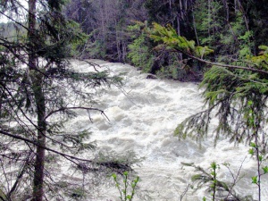 Per Fahrrad geht es am rechten Ufer ca. 30 Hm bergauf, dann bergab. Die Straße verläuft für einige hundert Meter direkt am Fluss und gewährt aus nächster Nähe einen Blick auf die tosenden Stromschnellen. Der Weg verläuft hier und auf den nächsten 45 km auf der Bundesstraße. Bis Hieflau ist zunächst nicht viel Verkehr. Immer wieder geht es auf und ab, denn das enge Tal lässt nicht immer Platz für die Straße.