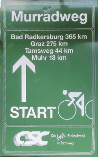 Hier ist der offizielle Beginn des Murradwegs.