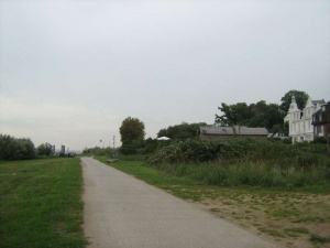 Über die Verbindungsschleuse (Borßumer Kanal) fährt man nach Emden hinein, biegt dann rechts in die Heilsberger Straße und wieder links in die Thorner Straße ab. Weiter bis zur Jugendherberge, dort rechts abbiegen und am Freibad vorbei zur Kesselschleuse, die - mit Absperrungen versehen - für Gespannfahrer etwas umständlich zu überqueren ist. Direkt nach der Schleuse links und an der nächsten Kreuzung rechts auf den Wall abbiegen. Wer in die Altstadt will, fährt hier geradeaus. Der Radweg führt komplett auf dem Wall außen um die Altstadt herum, wer nur auf dem Track bleibt, bekommt von Emden ansonsten nicht viel zu sehen.