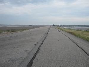 Hinter dem Dorf Hatzum befindet sich das Emssperrwerk, welches jedoch nur vom Deich aus zu sehen ist.
