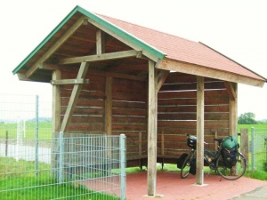 Von der Bundesstraße aus geht es zunächst rechts ab, am Ortsausgang geht es wieder an die Hauptstraße bis zur Autobahnüberführung, dann wieder rechts halten, überwiegend gut asphaltierte Wege hinterm Deich. Achtung Schafe! Gatter sind manchmal sehr eng für beladene Räder!