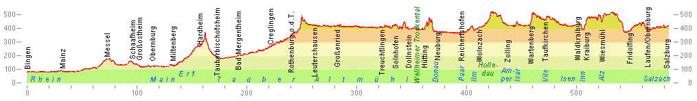 In den Karten in www.radweit.de besteht diese Route aus Bingen – Miltenberg und den Blättern B bis E von Frankfurt – Salzburg. Aber schon die erste Recherchetour ging von Bingen nach Salzburg.