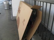 | 22:34, 9. Jan. 2012 | Fahrradverpackung UnitedAirlines Gaudimax.jpg (Datei) | 420 KB | Gekaufter Fahrradkarton am Schalter von United Airlines in Los Angeles für 10 $ (2008). Bis auf Lenker querstellen Fahrrad ohne Umbau vollständig verpackbar, inkl. genug Platz für Zelt, Isomatte etc. in der Verpackung. | 1 | |
