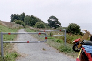 Kurze, sehr schöne Strecke, aber mit kräftigem Auf- und Ab, je nach Kondition Schiebestrecken für Kinderanhänger-Gespanne. Umfahren durch Rückkehr auf 159, dann weiter Richtung Allinge (aber auch hier nicht steigungsfrei, nicht getestet).
