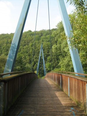 Alternativstrecke: Wer den öffentlichen Verkehr scheut, kann hier über eine hohe Brücke die Werra überqueren. Der ausgeschilderte Radweg über Ellershausen ("BSA MTB 7") nach Lindewerra führt nahezu ausschließlich (ca. 100m Strecke mit wassergebundenem Belag) über asphaltierte Wirtschaftswege. Es gibt eine Unterführung der B27, wo die meisten Radfahrer wohl absteigen müssen.