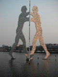 Die Molecule Man] als Symbol für die Schnittstelle 3er Berliner Stadtbezirke